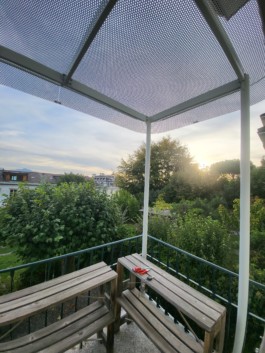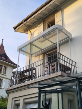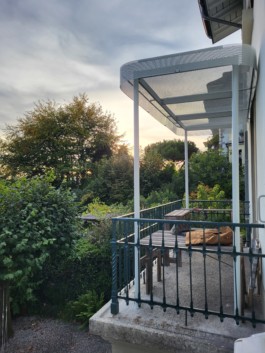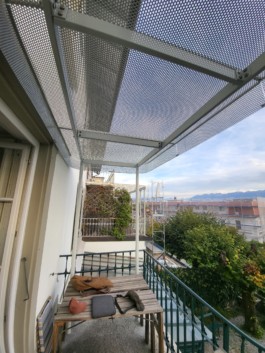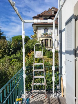 Pergola métallique sur le balcon, afin de créer de l'ombre au soleil d'été.