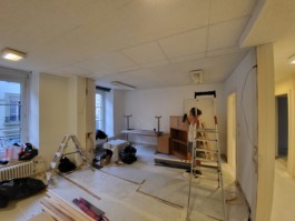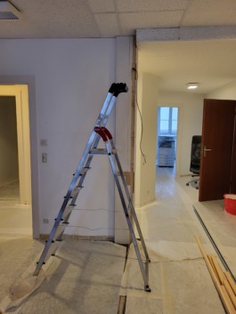 Démolition d'une parois existante, retouches sol-plafond, plinthes.